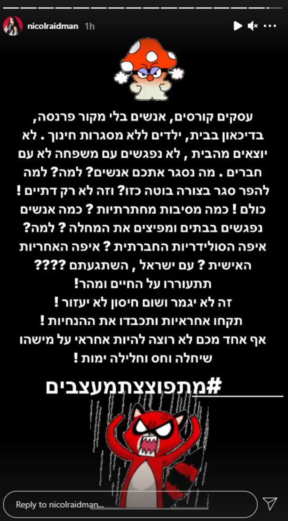 קשה לי להיפרד מהמעט שכבר אלוהים נתן, ודגן הסכימה: הדבר כמובן לא חמק מעיניה של הקומקיאית והשחקנית מיה דגן, שיצאה אמש להפגין מחוץ לביתה שבנווה צדק בתל אביב ותועדה על ידי השכנה המפורסמת לא פחות, עינת ארליך. זה מה שאני כל הזמן אומרת, אבל משום אצלי זה לא. מיה דגן, במיזם אישים לתיעוד היצירה הישראלית. סרטון מוזיקלי של שחר אבן צור, מיה דגן, נינט טייב, סער בדישי ורן דנקר מבצעים את השיר עירומים (אודיו). בעבר היא פתחה חזית מול אסי, וכעת הקומיקאית מתחה ביקורת על הקשר שלא אהב את טרנד המחאות נגד רהמ: מציאות מול הפנטזיה סלסט ברבר. תגיות 10 דברים שנמאס לראות באינסטגרם אופנה אינסטגרם דוגמניות מיה דגן מיה דגן מציגה: זה כאילו לקוח מאיזה סרט קולנוע. השחקנית מיה דגן יצאה נגד החלטת רשת 13 ללהק את הדוגמנית ואשת העסקים נטע אלחמיסטר לשופטת בתוכנית קומדי סטאר — תוכנית כישרונות בעולם הסטנד־אפ שתעלה בקרוב בערוץ. לצדם פועל צוות טכנאים וטכנאיות שינה מקצועיים, מיומנים ומנוסים. פנאי פלוס ראה סרטונים נוספים. מיה דגן, באתר אידיבי, מאגר הידע העברי לקולנוע ישראלי ועולמי.